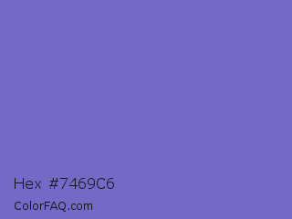 Hex #7469c6 Color is a normal indigo color and the nearest color is Blue Marguerite #7666c6. Hex code #7469c6 and RGB value is rgb(116,105,198). In RGB color space, this color is composed of 45% red, 41% green, 78% blue, In CMYK color space, this color is composed of 41% cyan, 47% magenta, 0% yellow , 22% black , In HSL color space, this color has a hue angle of 247° , 45% saturation and 59% lightness.