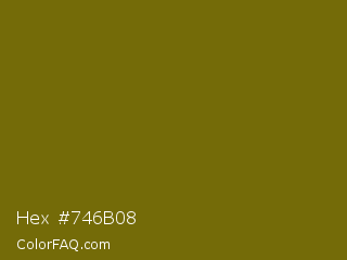 Hex #746b08 Color is a dark yellow color and the nearest color is Spicy Mustard #74640d. Hex code #746b08 and RGB value is rgb(116,107,8). In RGB color space, this color is composed of 45% red, 42% green, 3% blue, In CMYK color space, this color is composed of 0% cyan, 8% magenta, 93% yellow , 55% black , In HSL color space, this color has a hue angle of 55° , 87% saturation and 24% lightness.