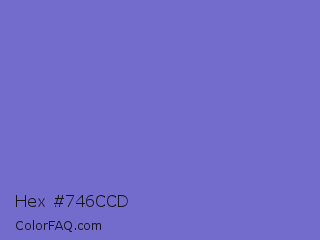 Hex #746ccd Color is a light indigo color and the nearest color is Blue Marguerite #7666c6. Hex code #746ccd and RGB value is rgb(116,108,205). In RGB color space, this color is composed of 45% red, 42% green, 80% blue, In CMYK color space, this color is composed of 43% cyan, 47% magenta, 0% yellow , 20% black , In HSL color space, this color has a hue angle of 245° , 49% saturation and 61% lightness.