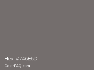 Hex #746e6d Color is a normal red color and the nearest color is Dove Gray #6d6c6c. Hex code #746e6d and RGB value is rgb(116,110,109). In RGB color space, this color is composed of 45% red, 43% green, 43% blue, In CMYK color space, this color is composed of 0% cyan, 5% magenta, 6% yellow , 55% black , In HSL color space, this color has a hue angle of 9° , 3% saturation and 44% lightness.