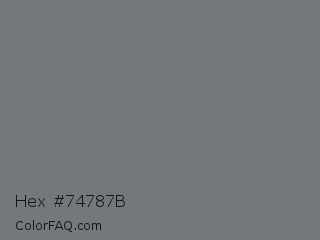 Hex #74787b Color is a normal blue color and the nearest color is Boulder #7a7a7a. Hex code #74787b and RGB value is rgb(116,120,123). In RGB color space, this color is composed of 45% red, 47% green, 48% blue, In CMYK color space, this color is composed of 6% cyan, 2% magenta, 0% yellow , 52% black , In HSL color space, this color has a hue angle of 206° , 3% saturation and 47% lightness.