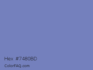Hex #7480bd Color is a normal blue color and the nearest color is Wild Blue Yonder #7a89b8. Hex code #7480bd and RGB value is rgb(116,128,189). In RGB color space, this color is composed of 45% red, 50% green, 74% blue, In CMYK color space, this color is composed of 39% cyan, 32% magenta, 0% yellow , 26% black , In HSL color space, this color has a hue angle of 230° , 36% saturation and 60% lightness.