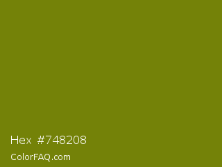 Hex #748208 Color is a dark yellow color and the nearest color is Olive #808000. Hex code #748208 and RGB value is rgb(116,130,8). In RGB color space, this color is composed of 45% red, 51% green, 3% blue, In CMYK color space, this color is composed of 11% cyan, 0% magenta, 94% yellow , 49% black , In HSL color space, this color has a hue angle of 67° , 88% saturation and 27% lightness.