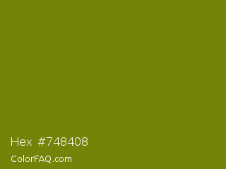 Hex #748408 Color is a dark yellow color and the nearest color is Olive #808000. Hex code #748408 and RGB value is rgb(116,132,8). In RGB color space, this color is composed of 45% red, 52% green, 3% blue, In CMYK color space, this color is composed of 12% cyan, 0% magenta, 94% yellow , 48% black , In HSL color space, this color has a hue angle of 68° , 89% saturation and 27% lightness.