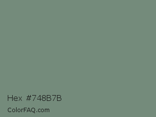 Hex #748b7b Color is a normal green color and the nearest color is Xanadu #738678. Hex code #748b7b and RGB value is rgb(116,139,123). In RGB color space, this color is composed of 45% red, 55% green, 48% blue, In CMYK color space, this color is composed of 17% cyan, 0% magenta, 12% yellow , 45% black , In HSL color space, this color has a hue angle of 138° , 9% saturation and 50% lightness.