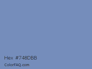 Hex #748dbb Color is a normal blue color and the nearest color is Ship Cove #788bba. Hex code #748dbb and RGB value is rgb(116,141,187). In RGB color space, this color is composed of 45% red, 55% green, 73% blue, In CMYK color space, this color is composed of 38% cyan, 25% magenta, 0% yellow , 27% black , In HSL color space, this color has a hue angle of 219° , 34% saturation and 59% lightness.