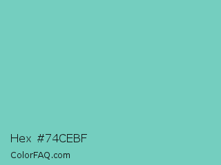 Hex #74cebf Color is a light cyan color and the nearest color is Downy #6fd0c5. Hex code #74cebf and RGB value is rgb(116,206,191). In RGB color space, this color is composed of 45% red, 81% green, 75% blue, In CMYK color space, this color is composed of 44% cyan, 0% magenta, 7% yellow , 19% black , In HSL color space, this color has a hue angle of 170° , 48% saturation and 63% lightness.