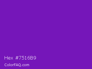 Hex #7516b9 Color is a normal purple color and the nearest color is Violet RYB #8601af. Hex code #7516b9 and RGB value is rgb(117,22,185). In RGB color space, this color is composed of 46% red, 9% green, 73% blue, In CMYK color space, this color is composed of 37% cyan, 88% magenta, 0% yellow , 27% black , In HSL color space, this color has a hue angle of 275° , 79% saturation and 41% lightness.
