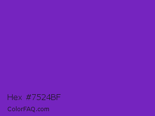 Hex #7524bf Color is a normal purple color and the nearest color is Purple Heart Crayola #652dc1. Hex code #7524bf and RGB value is rgb(117,36,191). In RGB color space, this color is composed of 46% red, 14% green, 75% blue, In CMYK color space, this color is composed of 39% cyan, 81% magenta, 0% yellow , 25% black , In HSL color space, this color has a hue angle of 271° , 68% saturation and 45% lightness.