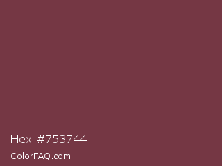 Hex #753744 Color is a normal red color and the nearest color is Catawba #703642. Hex code #753744 and RGB value is rgb(117,55,68). In RGB color space, this color is composed of 46% red, 22% green, 27% blue, In CMYK color space, this color is composed of 0% cyan, 53% magenta, 42% yellow , 54% black , In HSL color space, this color has a hue angle of 347° , 36% saturation and 34% lightness.