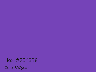 Hex #7543b8 Color is a normal violet color and the nearest color is Studio #714ab2. Hex code #7543b8 and RGB value is rgb(117,67,184). In RGB color space, this color is composed of 46% red, 26% green, 72% blue, In CMYK color space, this color is composed of 36% cyan, 64% magenta, 0% yellow , 28% black , In HSL color space, this color has a hue angle of 266° , 47% saturation and 49% lightness.