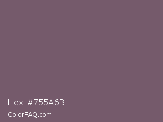 Hex #755a6b Color is a normal magenta color and the nearest color is Falcon #7f626d. Hex code #755a6b and RGB value is rgb(117,90,107). In RGB color space, this color is composed of 46% red, 35% green, 42% blue, In CMYK color space, this color is composed of 0% cyan, 23% magenta, 9% yellow , 54% black , In HSL color space, this color has a hue angle of 322° , 13% saturation and 41% lightness.