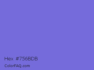 Hex #756bdb Color is a light indigo color and the nearest color is Moody Blue #7f76d3. Hex code #756bdb and RGB value is rgb(117,107,219). In RGB color space, this color is composed of 46% red, 42% green, 86% blue, In CMYK color space, this color is composed of 47% cyan, 51% magenta, 0% yellow , 14% black , In HSL color space, this color has a hue angle of 245° , 61% saturation and 64% lightness.
