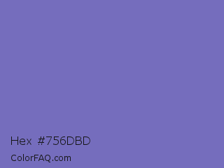 Hex #756dbd Color is a normal indigo color and the nearest color is Toolbox #746cc0. Hex code #756dbd and RGB value is rgb(117,109,189). In RGB color space, this color is composed of 46% red, 43% green, 74% blue, In CMYK color space, this color is composed of 38% cyan, 42% magenta, 0% yellow , 26% black , In HSL color space, this color has a hue angle of 246° , 38% saturation and 58% lightness.