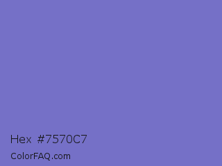 Hex #7570c7 Color is a light indigo color and the nearest color is Toolbox #746cc0. Hex code #7570c7 and RGB value is rgb(117,112,199). In RGB color space, this color is composed of 46% red, 44% green, 78% blue, In CMYK color space, this color is composed of 41% cyan, 44% magenta, 0% yellow , 22% black , In HSL color space, this color has a hue angle of 243° , 44% saturation and 61% lightness.