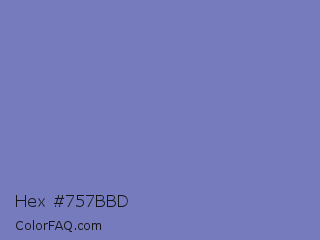 Hex #757bbd Color is a normal blue color and the nearest color is Toolbox #746cc0. Hex code #757bbd and RGB value is rgb(117,123,189). In RGB color space, this color is composed of 46% red, 48% green, 74% blue, In CMYK color space, this color is composed of 38% cyan, 35% magenta, 0% yellow , 26% black , In HSL color space, this color has a hue angle of 235° , 35% saturation and 60% lightness.