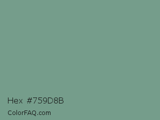 Hex #759d8b Color is a normal green color and the nearest color is Oxley #779e86. Hex code #759d8b and RGB value is rgb(117,157,139). In RGB color space, this color is composed of 46% red, 62% green, 55% blue, In CMYK color space, this color is composed of 25% cyan, 0% magenta, 11% yellow , 38% black , In HSL color space, this color has a hue angle of 153° , 17% saturation and 54% lightness.