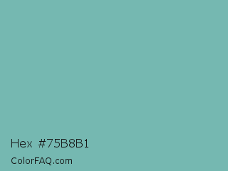 Hex #75b8b1 Color is a normal cyan color and the nearest color is Neptune #7cb7bb. Hex code #75b8b1 and RGB value is rgb(117,184,177). In RGB color space, this color is composed of 46% red, 72% green, 69% blue, In CMYK color space, this color is composed of 36% cyan, 0% magenta, 4% yellow , 28% black , In HSL color space, this color has a hue angle of 174° , 32% saturation and 59% lightness.