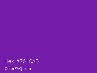 Hex #761cab Color is a normal purple color and the nearest color is Grape #6f2da8. Hex code #761cab and RGB value is rgb(118,28,171). In RGB color space, this color is composed of 46% red, 11% green, 67% blue, In CMYK color space, this color is composed of 31% cyan, 84% magenta, 0% yellow , 33% black , In HSL color space, this color has a hue angle of 278° , 72% saturation and 39% lightness.