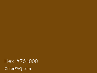 Hex #764808 Color is a dark orange color and the nearest color is Antique Bronze #704a07. Hex code #764808 and RGB value is rgb(118,72,8). In RGB color space, this color is composed of 46% red, 28% green, 3% blue, In CMYK color space, this color is composed of 0% cyan, 39% magenta, 93% yellow , 54% black , In HSL color space, this color has a hue angle of 35° , 87% saturation and 25% lightness.