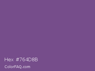 Hex #764d8b Color is a normal purple color and the nearest color is Dark Lavender #734f96. Hex code #764d8b and RGB value is rgb(118,77,139). In RGB color space, this color is composed of 46% red, 30% green, 55% blue, In CMYK color space, this color is composed of 15% cyan, 45% magenta, 0% yellow , 45% black , In HSL color space, this color has a hue angle of 280° , 29% saturation and 42% lightness.