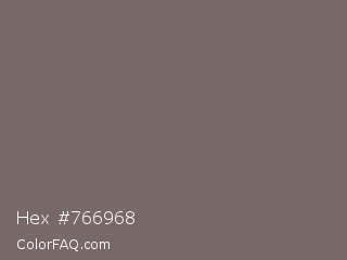 Hex #766968 Color is a normal red color and the nearest color is Sandstone #796d62. Hex code #766968 and RGB value is rgb(118,105,104). In RGB color space, this color is composed of 46% red, 41% green, 41% blue, In CMYK color space, this color is composed of 0% cyan, 11% magenta, 12% yellow , 54% black , In HSL color space, this color has a hue angle of 4° , 6% saturation and 44% lightness.