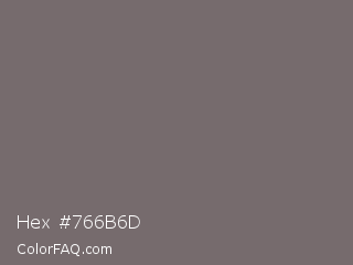 Hex #766b6d Color is a normal red color and the nearest color is Dove Gray #6d6c6c. Hex code #766b6d and RGB value is rgb(118,107,109). In RGB color space, this color is composed of 46% red, 42% green, 43% blue, In CMYK color space, this color is composed of 0% cyan, 9% magenta, 8% yellow , 54% black , In HSL color space, this color has a hue angle of 349° , 5% saturation and 44% lightness.