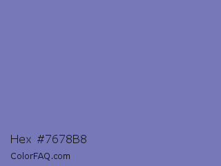 Hex #7678b8 Color is a normal blue color and the nearest color is Toolbox #746cc0. Hex code #7678b8 and RGB value is rgb(118,120,184). In RGB color space, this color is composed of 46% red, 47% green, 72% blue, In CMYK color space, this color is composed of 36% cyan, 35% magenta, 0% yellow , 28% black , In HSL color space, this color has a hue angle of 238° , 32% saturation and 59% lightness.