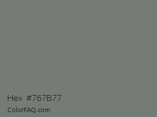 Hex #767b77 Color is a normal green color and the nearest color is Boulder #7a7a7a. Hex code #767b77 and RGB value is rgb(118,123,119). In RGB color space, this color is composed of 46% red, 48% green, 47% blue, In CMYK color space, this color is composed of 4% cyan, 0% magenta, 3% yellow , 52% black , In HSL color space, this color has a hue angle of 132° , 2% saturation and 47% lightness.