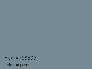 Hex #768b96 Color is a normal blue color and the nearest color is Light Slate Gray #778899. Hex code #768b96 and RGB value is rgb(118,139,150). In RGB color space, this color is composed of 46% red, 55% green, 59% blue, In CMYK color space, this color is composed of 21% cyan, 7% magenta, 0% yellow , 41% black , In HSL color space, this color has a hue angle of 201° , 13% saturation and 53% lightness.