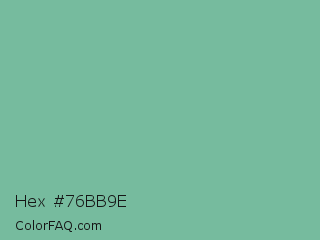 Hex #76bb9e Color is a normal green color and the nearest color is Acapulco #7cb0a1. Hex code #76bb9e and RGB value is rgb(118,187,158). In RGB color space, this color is composed of 46% red, 73% green, 62% blue, In CMYK color space, this color is composed of 37% cyan, 0% magenta, 16% yellow , 27% black , In HSL color space, this color has a hue angle of 155° , 34% saturation and 60% lightness.