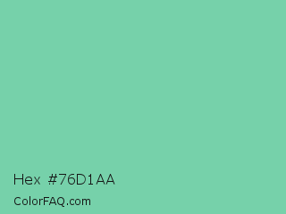 Hex #76d1aa Color is a light green color and the nearest color is Medium Aquamarine #66ddaa. Hex code #76d1aa and RGB value is rgb(118,209,170). In RGB color space, this color is composed of 46% red, 82% green, 67% blue, In CMYK color space, this color is composed of 44% cyan, 0% magenta, 19% yellow , 18% black , In HSL color space, this color has a hue angle of 154° , 50% saturation and 64% lightness.