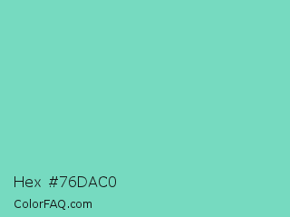 Hex #76dac0 Color is a light cyan color and the nearest color is Bermuda #7dd8c6. Hex code #76dac0 and RGB value is rgb(118,218,192). In RGB color space, this color is composed of 46% red, 85% green, 75% blue, In CMYK color space, this color is composed of 46% cyan, 0% magenta, 12% yellow , 15% black , In HSL color space, this color has a hue angle of 164° , 57% saturation and 66% lightness.