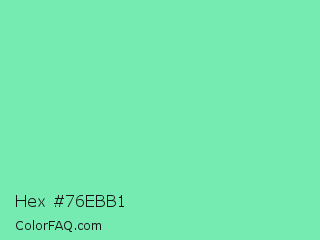 Hex #76ebb1 Color is a light green color and the nearest color is Medium Aquamarine #66ddaa. Hex code #76ebb1 and RGB value is rgb(118,235,177). In RGB color space, this color is composed of 46% red, 92% green, 69% blue, In CMYK color space, this color is composed of 50% cyan, 0% magenta, 25% yellow , 8% black , In HSL color space, this color has a hue angle of 150° , 75% saturation and 69% lightness.