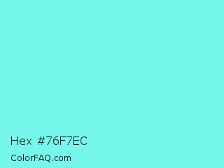 Hex #76f7ec Color is a light cyan color and the nearest color is Electric Blue #7df9ff. Hex code #76f7ec and RGB value is rgb(118,247,236). In RGB color space, this color is composed of 46% red, 97% green, 93% blue, In CMYK color space, this color is composed of 52% cyan, 0% magenta, 4% yellow , 3% black , In HSL color space, this color has a hue angle of 175° , 89% saturation and 72% lightness.