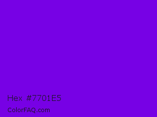 Hex #7701e5 Color is a normal purple color and the nearest color is Violet Color Wheel #7f00ff. Hex code #7701e5 and RGB value is rgb(119,1,229). In RGB color space, this color is composed of 47% red, 0% green, 90% blue, In CMYK color space, this color is composed of 48% cyan, 100% magenta, 0% yellow , 10% black , In HSL color space, this color has a hue angle of 271° , 99% saturation and 45% lightness.