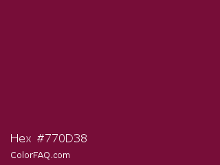 Hex #770d38 Color is a dark rose color and the nearest color is Siren #7a013a. Hex code #770d38 and RGB value is rgb(119,13,56). In RGB color space, this color is composed of 47% red, 5% green, 22% blue, In CMYK color space, this color is composed of 0% cyan, 89% magenta, 53% yellow , 53% black , In HSL color space, this color has a hue angle of 336° , 80% saturation and 26% lightness.