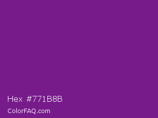 Hex #771b8b Color is a normal purple color and the nearest color is Seance #731e8f. Hex code #771b8b and RGB value is rgb(119,27,139). In RGB color space, this color is composed of 47% red, 11% green, 55% blue, In CMYK color space, this color is composed of 14% cyan, 81% magenta, 0% yellow , 45% black , In HSL color space, this color has a hue angle of 289° , 67% saturation and 33% lightness.