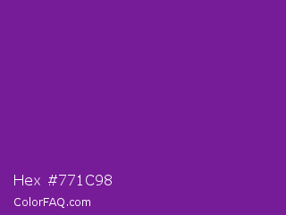 Hex #771c98 Color is a normal purple color and the nearest color is Seance #731e8f. Hex code #771c98 and RGB value is rgb(119,28,152). In RGB color space, this color is composed of 47% red, 11% green, 60% blue, In CMYK color space, this color is composed of 22% cyan, 82% magenta, 0% yellow , 40% black , In HSL color space, this color has a hue angle of 284° , 69% saturation and 35% lightness.