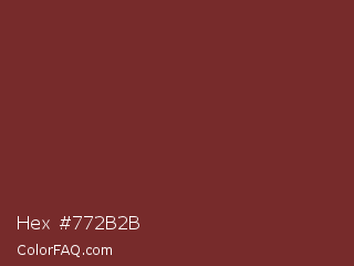 Hex #772b2b Color is a normal red color and the nearest color is Wine #722f37. Hex code #772b2b and RGB value is rgb(119,43,43). In RGB color space, this color is composed of 47% red, 17% green, 17% blue, In CMYK color space, this color is composed of 0% cyan, 64% magenta, 64% yellow , 53% black , In HSL color space, this color has a hue angle of 0° , 47% saturation and 32% lightness.