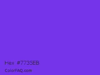 Hex #7735eb Color is a normal violet color and the nearest color is Blue Violet #8a2be2. Hex code #7735eb and RGB value is rgb(119,53,235). In RGB color space, this color is composed of 47% red, 21% green, 92% blue, In CMYK color space, this color is composed of 49% cyan, 77% magenta, 0% yellow , 8% black , In HSL color space, this color has a hue angle of 262° , 82% saturation and 56% lightness.