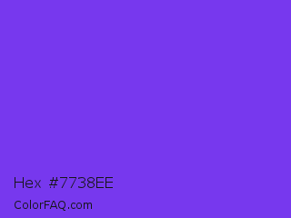 Hex #7738ee Color is a normal violet color and the nearest color is Blue Violet #8a2be2. Hex code #7738ee and RGB value is rgb(119,56,238). In RGB color space, this color is composed of 47% red, 22% green, 93% blue, In CMYK color space, this color is composed of 50% cyan, 76% magenta, 0% yellow , 7% black , In HSL color space, this color has a hue angle of 261° , 84% saturation and 58% lightness.