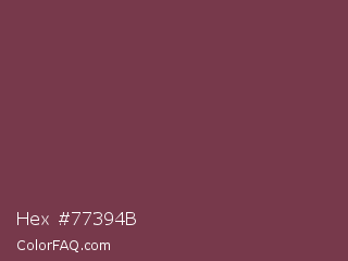 Hex #77394b Color is a normal rose color and the nearest color is Catawba #703642. Hex code #77394b and RGB value is rgb(119,57,75). In RGB color space, this color is composed of 47% red, 22% green, 29% blue, In CMYK color space, this color is composed of 0% cyan, 52% magenta, 37% yellow , 53% black , In HSL color space, this color has a hue angle of 343° , 35% saturation and 35% lightness.