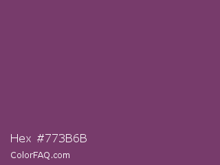 Hex #773b6b Color is a normal magenta color and the nearest color is Cosmic #76395d. Hex code #773b6b and RGB value is rgb(119,59,107). In RGB color space, this color is composed of 47% red, 23% green, 42% blue, In CMYK color space, this color is composed of 0% cyan, 50% magenta, 10% yellow , 53% black , In HSL color space, this color has a hue angle of 312° , 34% saturation and 35% lightness.