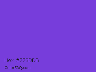 Hex #773ddb Color is a normal violet color and the nearest color is Blue Violet #8a2be2. Hex code #773ddb and RGB value is rgb(119,61,219). In RGB color space, this color is composed of 47% red, 24% green, 86% blue, In CMYK color space, this color is composed of 46% cyan, 72% magenta, 0% yellow , 14% black , In HSL color space, this color has a hue angle of 262° , 69% saturation and 55% lightness.