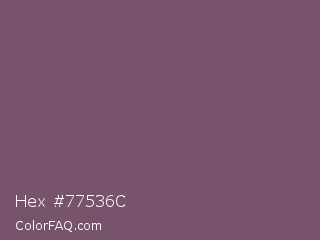 Hex #77536c Color is a normal magenta color and the nearest color is Falcon #7f626d. Hex code #77536c and RGB value is rgb(119,83,108). In RGB color space, this color is composed of 47% red, 33% green, 42% blue, In CMYK color space, this color is composed of 0% cyan, 30% magenta, 9% yellow , 53% black , In HSL color space, this color has a hue angle of 318° , 18% saturation and 40% lightness.