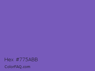 Hex #775abb Color is a normal indigo color and the nearest color is Fuchsia Blue #7a58c1. Hex code #775abb and RGB value is rgb(119,90,187). In RGB color space, this color is composed of 47% red, 35% green, 73% blue, In CMYK color space, this color is composed of 36% cyan, 52% magenta, 0% yellow , 27% black , In HSL color space, this color has a hue angle of 258° , 42% saturation and 54% lightness.