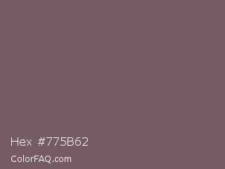Hex #775b62 Color is a normal red color and the nearest color is Deep Taupe #7e5e60. Hex code #775b62 and RGB value is rgb(119,91,98). In RGB color space, this color is composed of 47% red, 36% green, 38% blue, In CMYK color space, this color is composed of 0% cyan, 24% magenta, 18% yellow , 53% black , In HSL color space, this color has a hue angle of 345° , 13% saturation and 41% lightness.