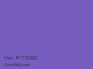 Hex #775dbd Color is a normal indigo color and the nearest color is Fuchsia Blue #7a58c1. Hex code #775dbd and RGB value is rgb(119,93,189). In RGB color space, this color is composed of 47% red, 36% green, 74% blue, In CMYK color space, this color is composed of 37% cyan, 51% magenta, 0% yellow , 26% black , In HSL color space, this color has a hue angle of 256° , 42% saturation and 55% lightness.