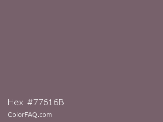 Hex #77616b Color is a normal rose color and the nearest color is Falcon #7f626d. Hex code #77616b and RGB value is rgb(119,97,107). In RGB color space, this color is composed of 47% red, 38% green, 42% blue, In CMYK color space, this color is composed of 0% cyan, 18% magenta, 10% yellow , 53% black , In HSL color space, this color has a hue angle of 333° , 10% saturation and 42% lightness.